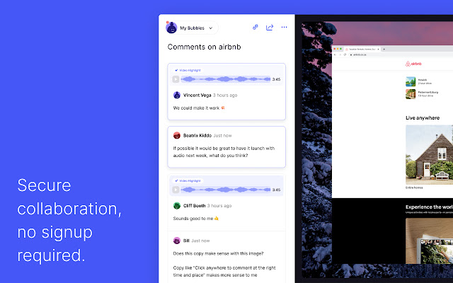 在说出您的想法的同时录制您的屏幕,并向您的同事发送一个独特的链接。然后,他们可以在您谈论的内容的背景下,在正确的时间和地点与您进行对话。