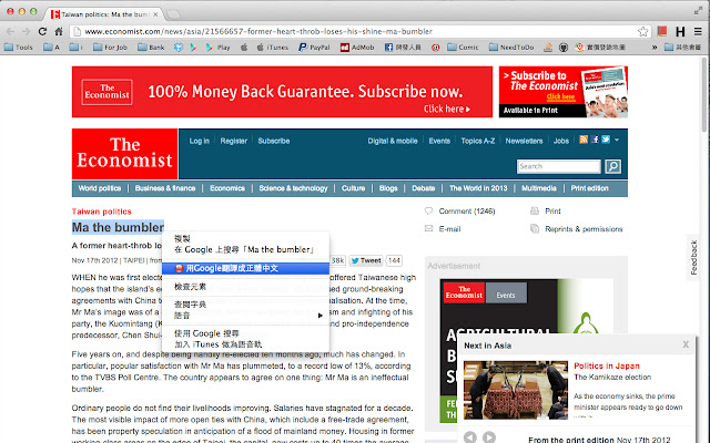 因为我找不到有正体中文的好用翻译扩充功能。
