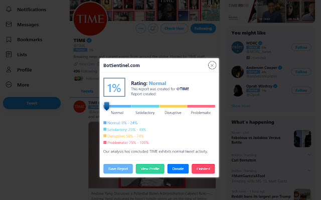 Bot Sentinel 是一个免费的无党派平台,旨在对不真实的帐户和有毒巨魔进行分类和跟踪。该平台使用机器学习和人工智能对 Twitter 帐户进行分类,然后将这些帐户添加到任何人都可以浏览的公开数据库中。