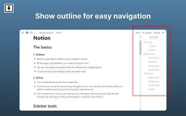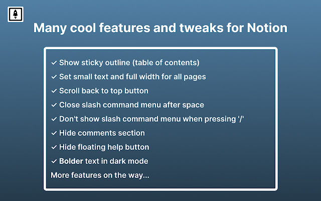 通过 20 多个自定义项提高 Notion 生产力,例如大纲、所有小文本全宽、返回顶部按钮等