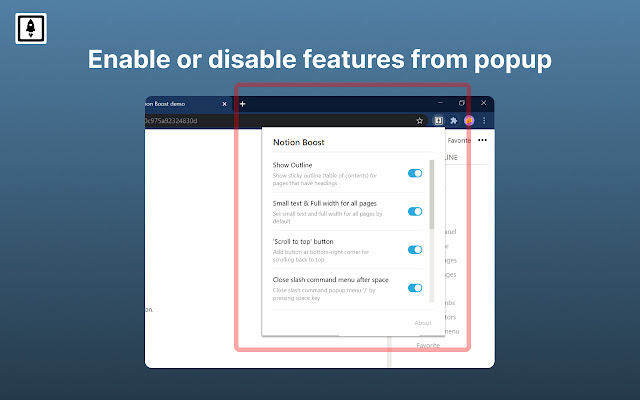 让 Notion 更高效、更分散注意力。 Notion Boost 是一个轻量级的扩展,可以为 Notion 添加额外的功能和调整: