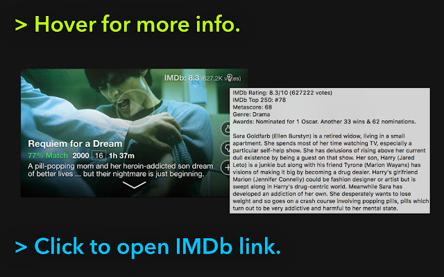 - IMDb 评级具有一个工具提示,其中包含更多元信息(情节、奖项、元分数等)。