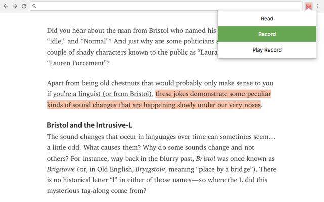 您可以在任何网页上大声朗读单词、短语或文章。补充你的字典,不要再害羞了。
