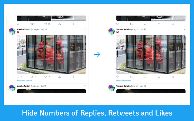 3. 隐藏回复、转发和喜欢的数量。当您将鼠标光标悬停在推文上时,它们就会出现。