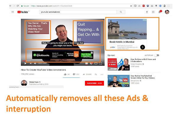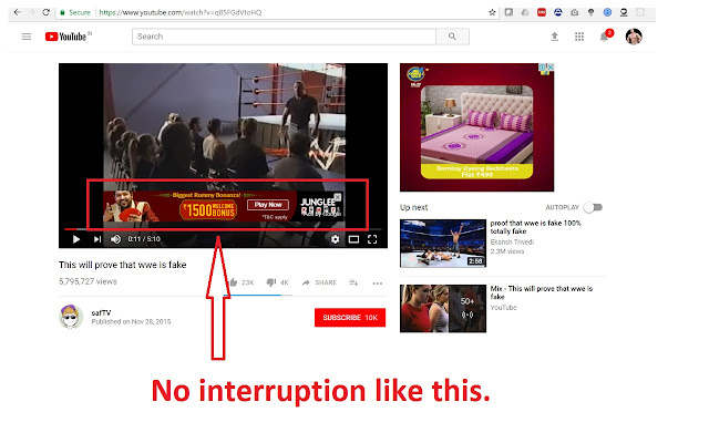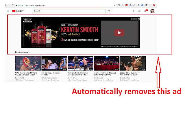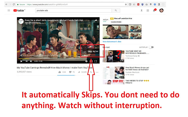 它会自动跳过广告。在 5 秒内自动跳过广告,在 Youtube 主屏幕中隐藏广告横幅。