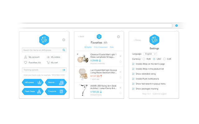 ★ 收藏夹和价格跟踪。将产品添加到您的心愿单,AliUp Price Tracker 将跟踪价格并在商品变得更便宜或再次出现在库存时向您发送通知。