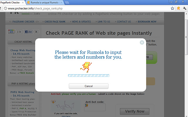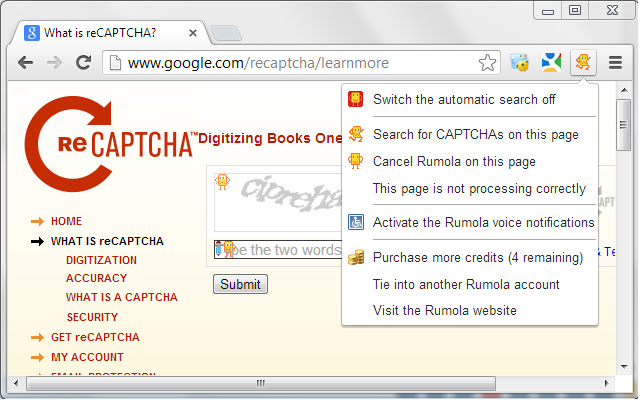Rumola 与 iMacros 自动化工具兼容。只需在页面加载后小睡一会儿,就可以让 Rumola 有时间找到 CAPTHA。