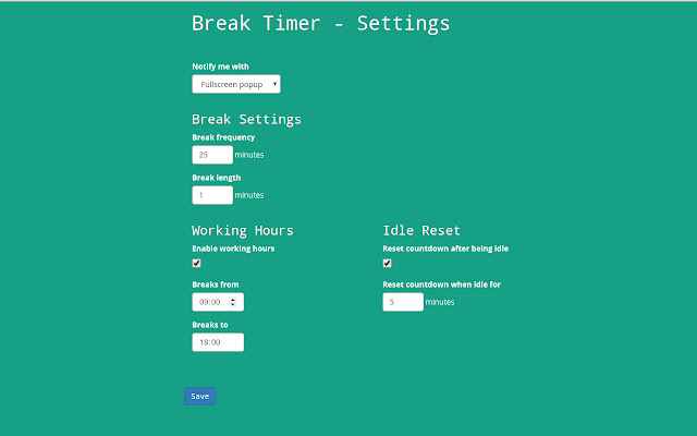 当它检测到您已经有一段时间没有使用计算机时,Break Timer 还会智能地重新启动您的休息倒计时(可选)。