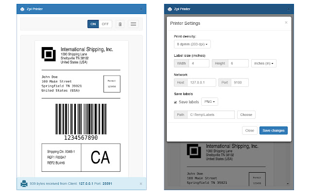 zpl 渲染引擎的打印机模拟器。模拟器基于 http://labelary.com/service.html 网络服务。您可以配置打印密度、标签尺寸和 tcp 服务器以侦听任何传入的标签。