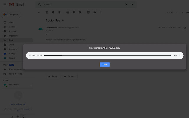向 Gmail 添加嵌入式音频和视频播放器,用于播放音频和视频附件。