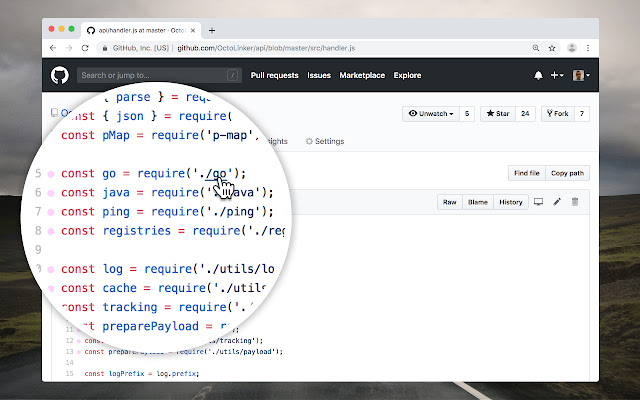 代码审查变得容易。 OctoLinker 在 Pull Request 上链接依赖项和文件,这样你就可以专注于重要的工作——代码审查。