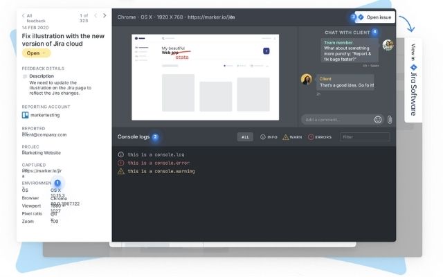 想让你的开发人员爱你吗?您通过 Marker.io 创建的票证将确保这一点,因为它们会自动丰富技术元数据和控制台日志。它使您的开发人员可以更轻松、更快速地重新创建和解决任何问题。