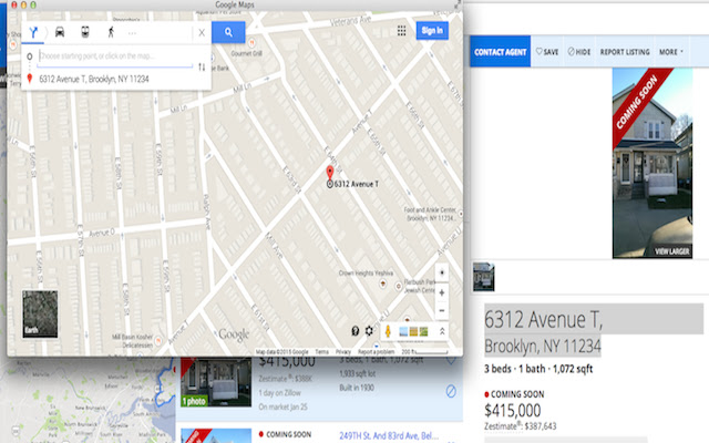 Chrome 的房地产插件。用户可以直接从同一页面打开谷歌地图中选定的地址。