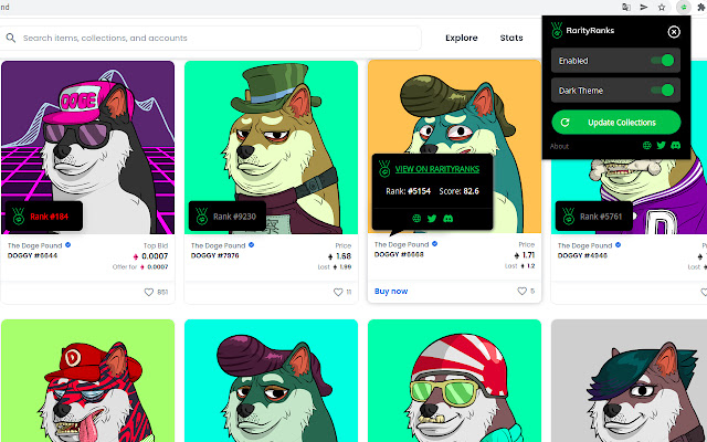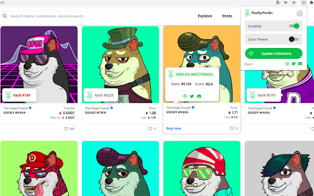 目前,该扩展程序仅显示一些集合的弹出窗口。例如“Doge Pound”。您可以在此页面上查看扩展的工作方式 - https://opensea.io/collection/the-doge-pound 或 https://market.x.immutable.com/assets?collection=0x343fd244ab5a1d1129a6edf21ba37c64aa725ff0