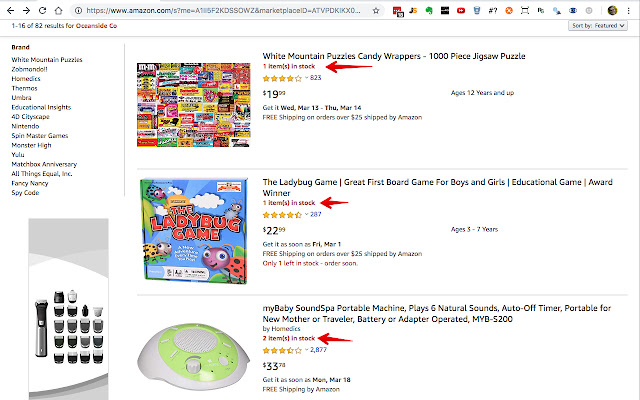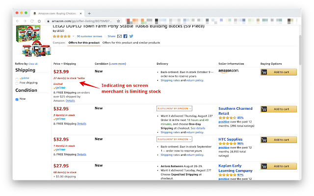 轻松查看您的竞争对手有多少可在亚马逊上购买。