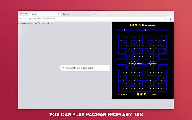 然后我们会打开一个吃豆子给你玩游戏!你不需要做任何其他事情!您还可以从任何 Chrome 标签页玩吃豆子。