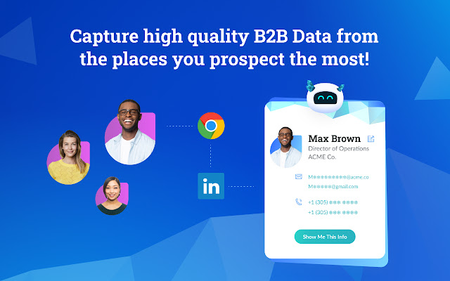 无需离开浏览器,即可直接从 LinkedIn 个人资料和公司网站获取联系信息,包括电子邮件地址、直拨电话和手机号码