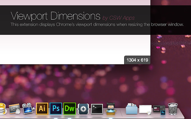 此扩展程序在调整浏览器窗口大小时显示 Chrome 的视口尺寸。