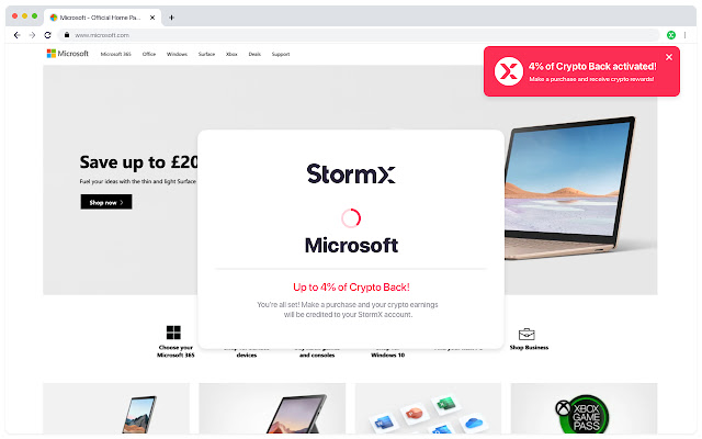 当您使用 StormX 购物应用程序时,您购物并获得奖励,然后您可以使用您选择的加密货币提取这些奖励: