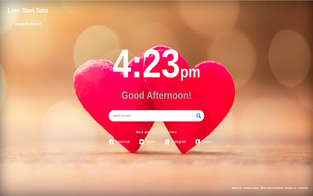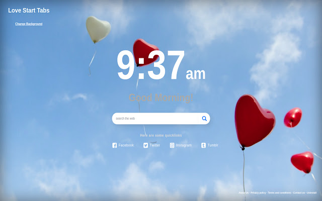这个扩展允许每天为你提供一个带有平静背景的爱情开始标签。随时更改您的爱情开始标签图像。
