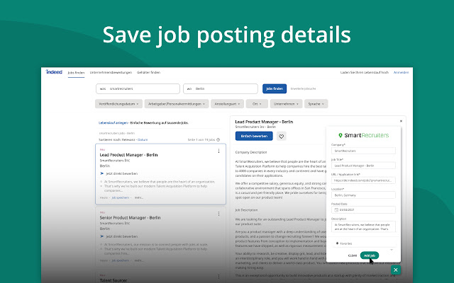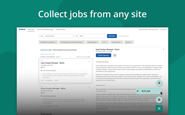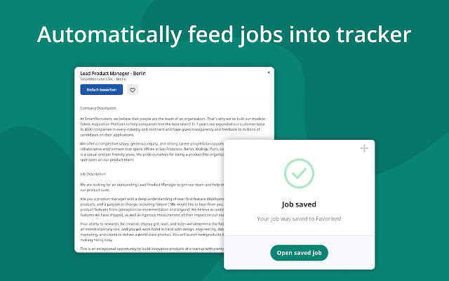 • 从任何网站(包括公司职业页面、工作板和聚合器)轻松保存工作