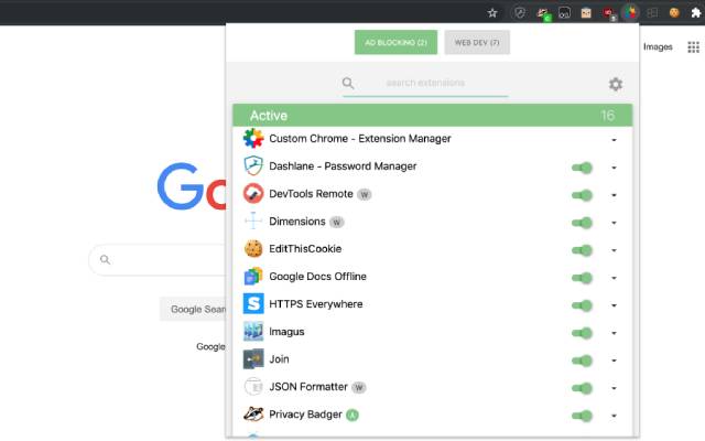 一个漂亮的谷歌浏览器扩展管理器,无需离开当前标签即可快速轻松地打开/关闭其他扩展