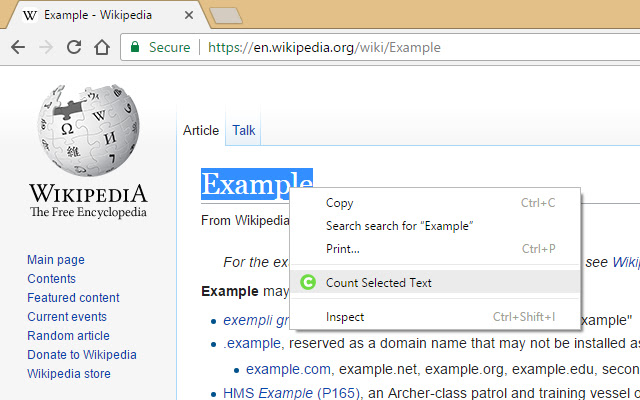 # 通过从上下文(右键单击)菜单中选择文本来计算字符和单词。