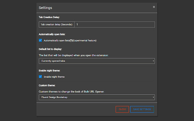 -Tab Creation Delay:用户请求的功能,允许用户在打开大量链接时在创建的每个选项卡之间设置指定的延迟(以秒为单位)