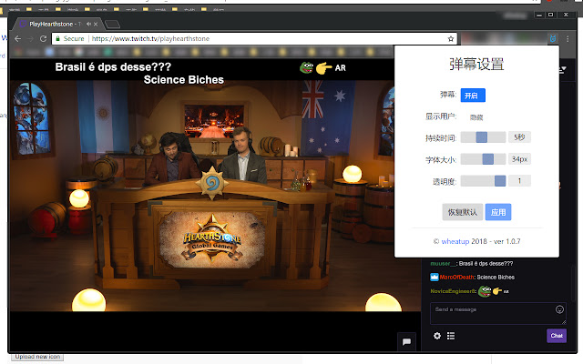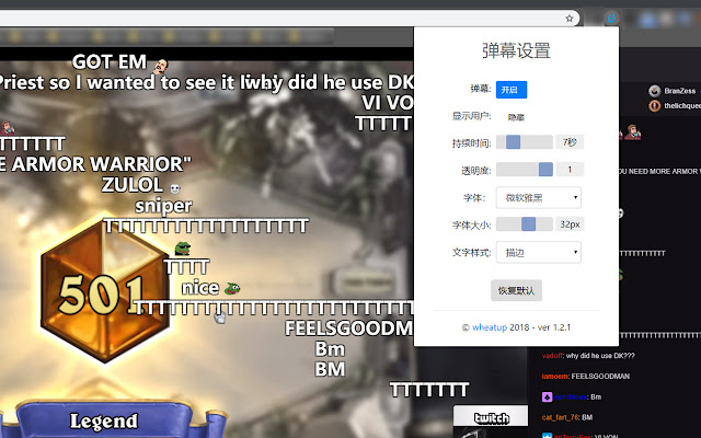 将Twitch聊天嵌入直播视频内部且以弹幕方式呈现,支持Twitch表情符号和BetterTTV自定义表情符号!