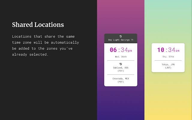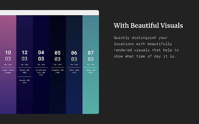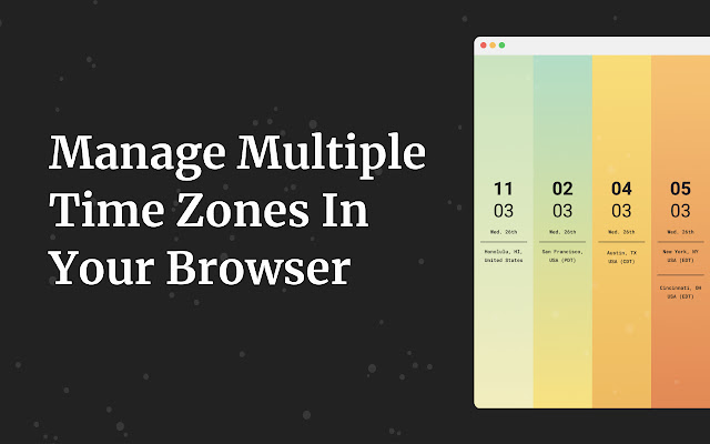 一个最小的时区扩展,最多可将您选择的十个时区添加到“新标签”屏幕,让您可以轻松安排会议、与家人联系和消除时差。