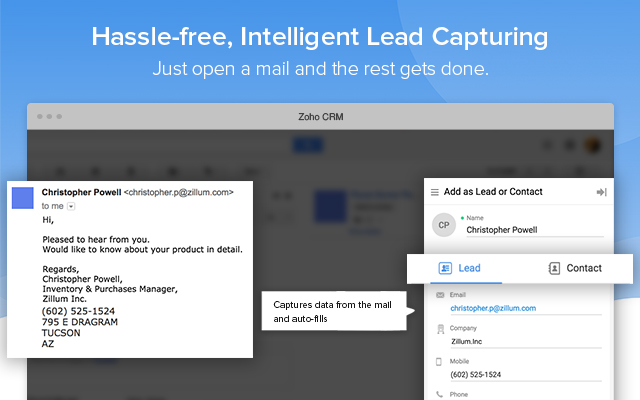 一种从 Gmail 向 Zoho CRM 添加线索、联系人的快捷方式。