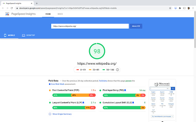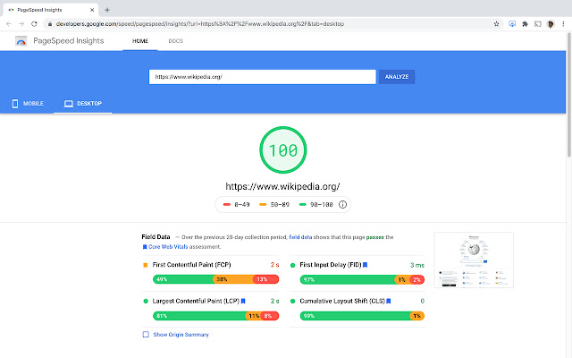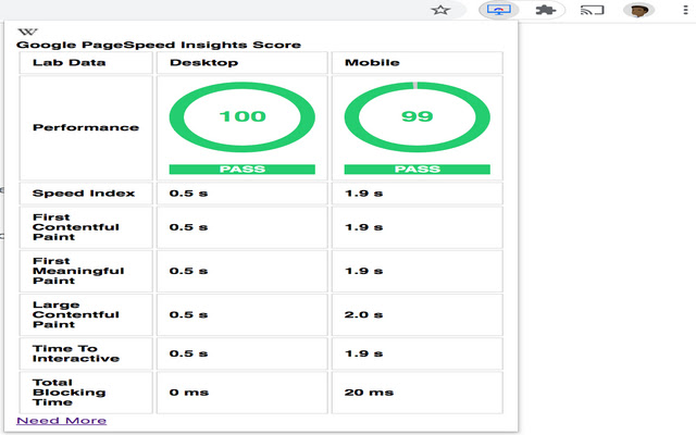 & 移动的。对 Google PageSpeed Insights(LightHouse) 的实时 API 调用,以显示网站性能摘要以及实验室数据,如速度指数、首次内容绘制、首次有意义绘制、大型内容绘制、交互时间和总阻塞时间。