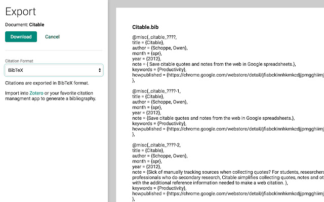 现在适用于 Brave、Vivaldi 和 Edge 浏览器。不再需要登录 Chrome。请注意, Citable 仍然依赖于 Google Sheets,因此您仍然需要一个 Google 帐户。