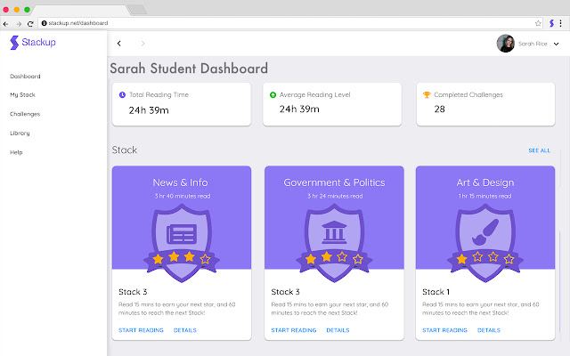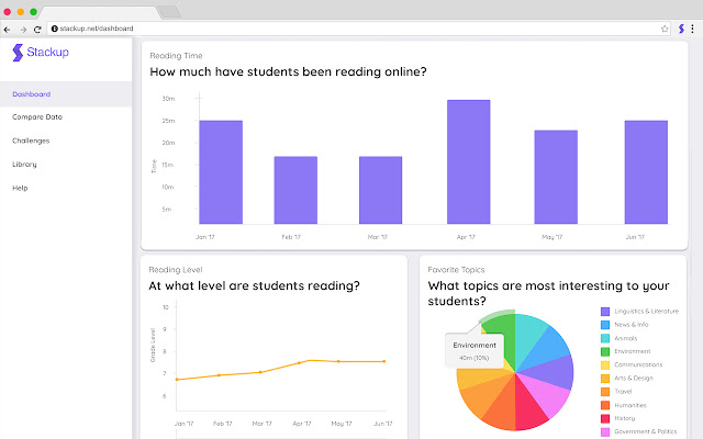 教师使用 Stackup 来分配和衡量课堂中的在线阅读和学习。