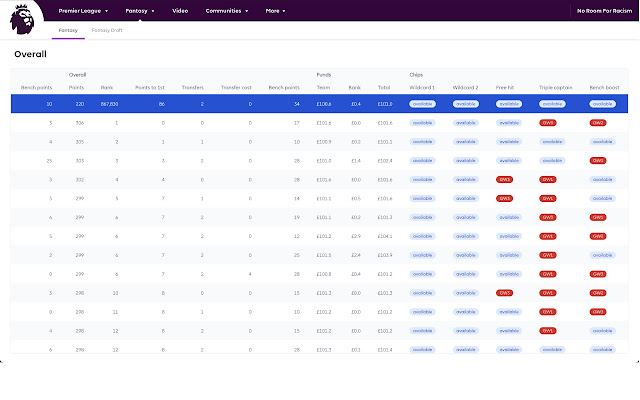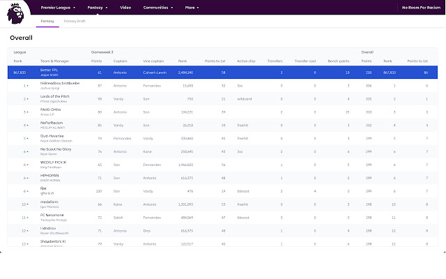 您还可以更好地跟进您的联赛,在那里您可以看到每个人都担任队长,他们到目前为止有多少分,以及他们还有多少球员可以上场。此外,您还可以查看谁在替补席上得分最多。