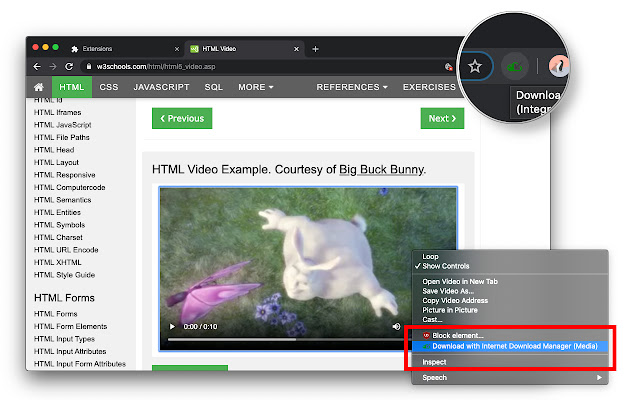 此扩展提供两个级别的集成。第一个是扩展附加到“链接”、“图像”、“视频”上下文的右键单击上下文菜单项。第二种方法是内置下载管理器的拦截。当新的下载请求发送到内置下载管理器时,扩展程序会暂停作业并将其传输到 IDMan。如果此传输成功,则扩展程序会从内置管理器中删除作业。