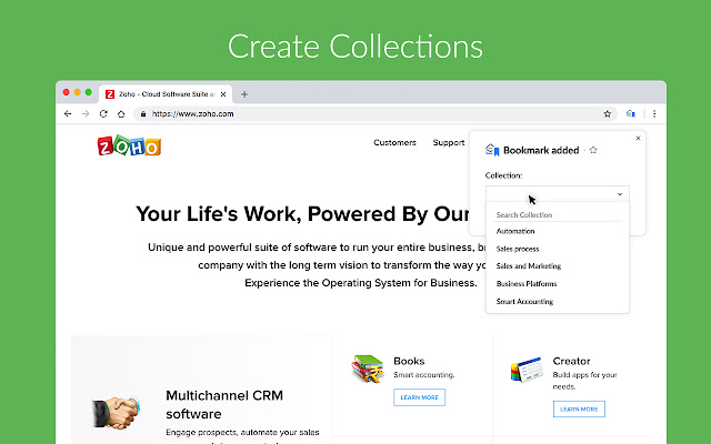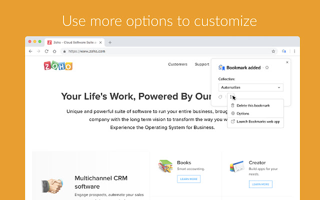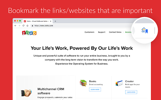 Zoho Mail 书签与您的收件箱集成,可以从任何地方访问。使用此插件,您可以轻松地将任何 URL/链接保存到 Zoho Mail 书签,以供您个人参考或与您的团队共享。