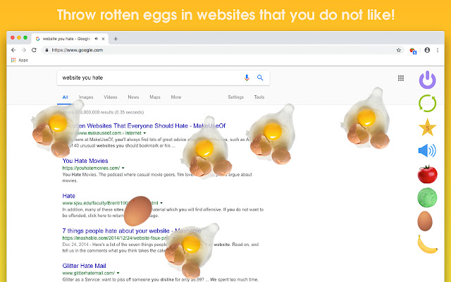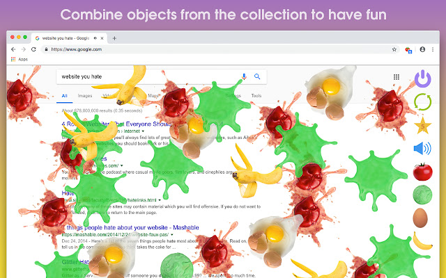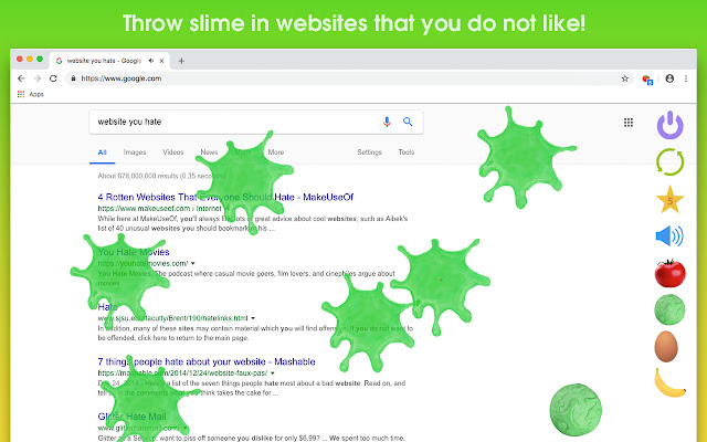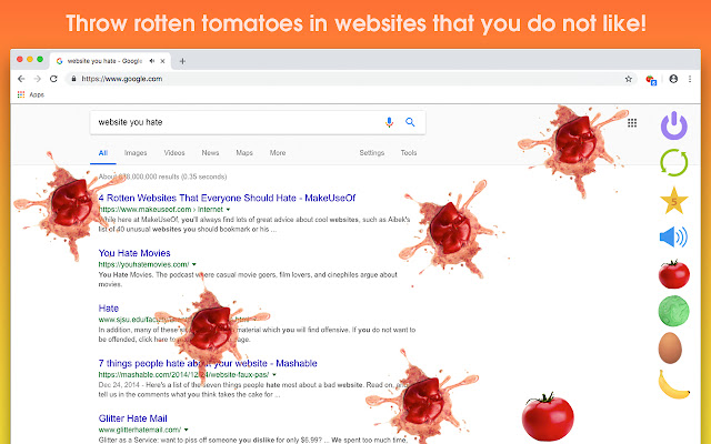 只需点击浏览器工具栏菜单中的网站驱逐舰扩展图标,然后通过鼠标点击讨厌的网站扔西红柿。