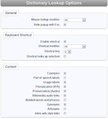 此扩展允许您在干净的内联框中快速查找单词和短语的定义。定义来自维基词典,但已经过处理以减少格式并提供更快的查找。按住修饰键(Windows 上的 Alt、Mac 上的 Command、Linux 上的 Ctrl)并双击或选择任何单词进行查找 - 一个内嵌框将打开该单词的字典条目,通常包括示例、音频发音和同义词。