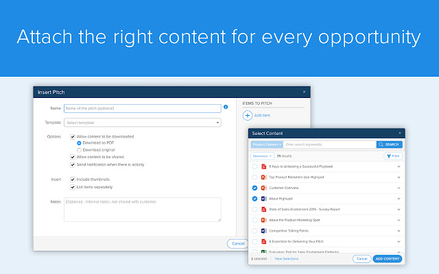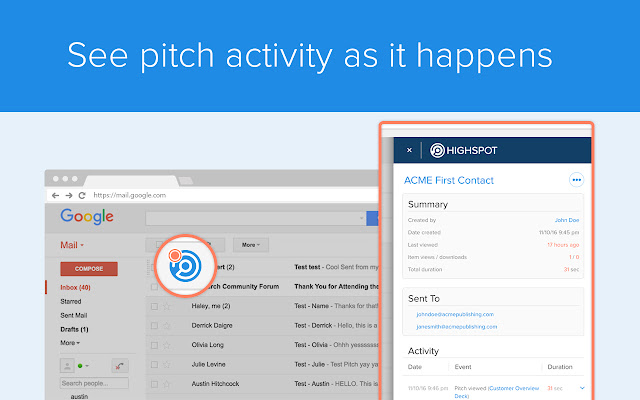 通过直接与 Gmail 集成,Highspot 自然而然地适合您的日常工作流程。