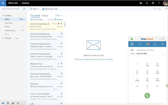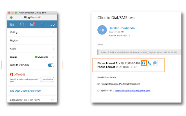 • 直接从邮件应用程序设置 RingCentral psence 状态。