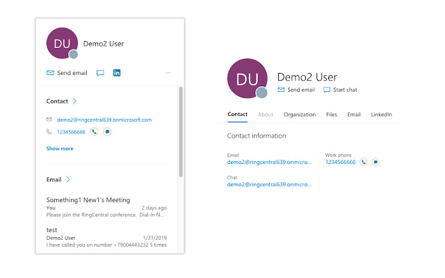 • 在一个易于搜索的屏幕中查看所有 RingCentral 和 Office 365 联系人。