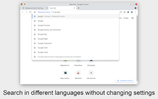 从地址栏和上下文菜单中搜索每种语言的维基百科。