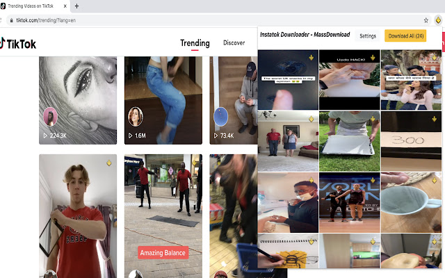 ✔ 通过打开工具栏的扩展弹出窗口,从 Tiktok 的任何页面批量下载所有视频。