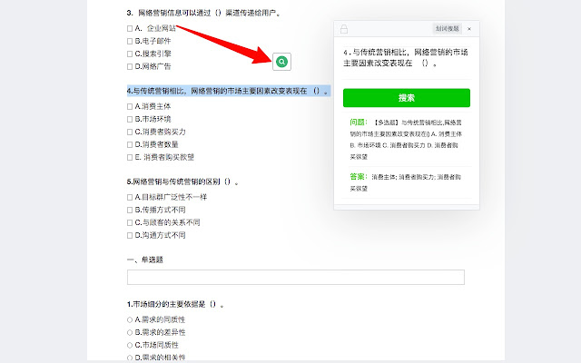 遇到不会的题目,选中题目,点击搜题小浮窗即可快速查题