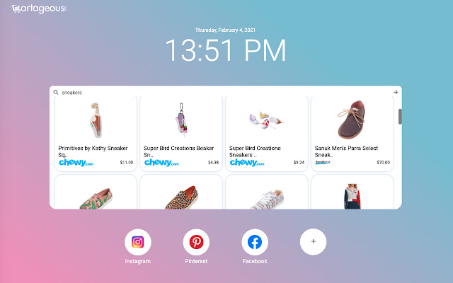 Cartageous 扩展以全新的体验取代了您的浏览器新标签和默认搜索引擎。