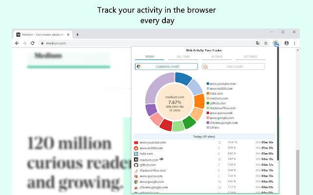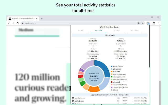 Web Activity Time Tracker 是一个开源项目,它可以跟踪您在网络上花费的时间,并以有用且直观的方式发送统计信息。您可以为站点设置每日访问限制,并在限制到期后阻止它。
