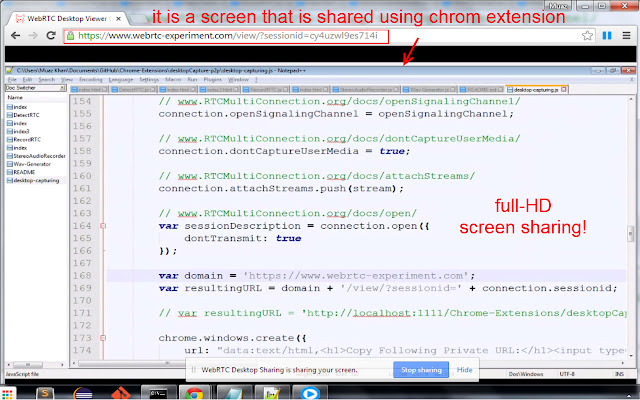 https://github.com/muaz-khan/Chrome-Extensions/tree/master/desktopCapture-p2p