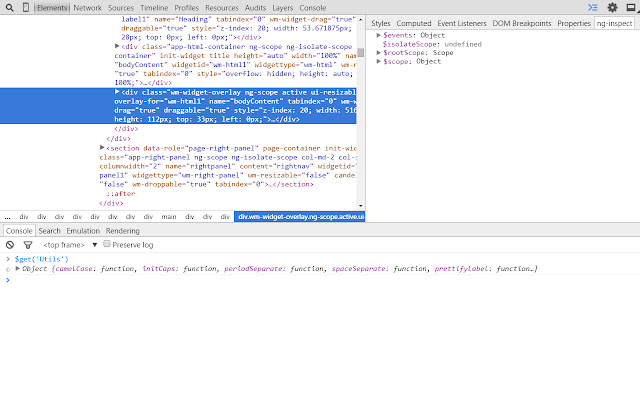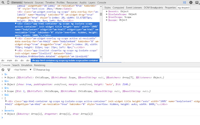 此扩展将提供对范围、isolateScope[如果范围是孤立的]、rootScope、jQuery 元素及其事件[如果页面中包含 jQuery]的访问。