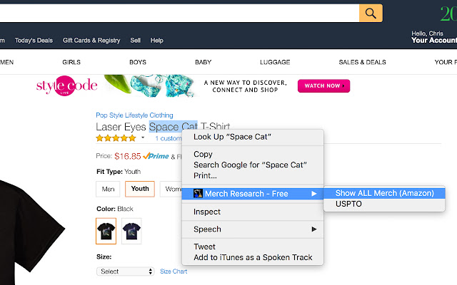 然后,右键单击或双击以查看您的 Merch Research 选项。